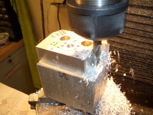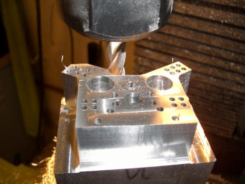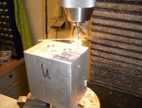 Die Dämpferbrücken wurden aus einem Aluklotz herausgearbeitet und so tief gebohrt, dass anschließend 3 fertige Brücken abgesägt werden konnten.