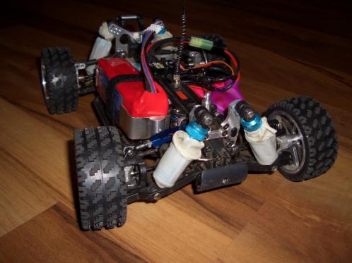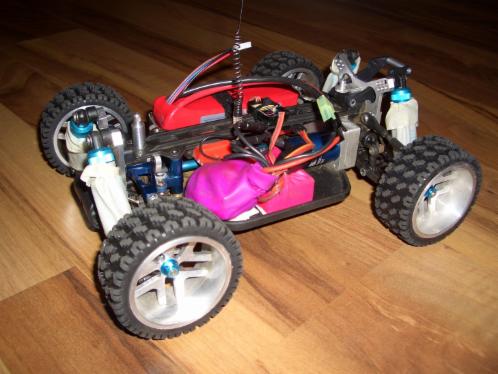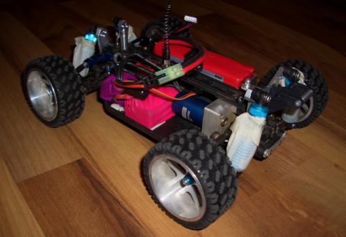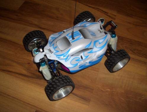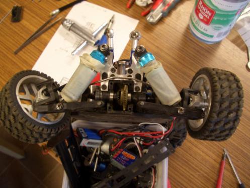 Zwischendurch wurden auch noch dickere Antriebsachsen aus Titan, 4 neue Alu-Achsschenkel, eine kpl. geschlossene Getriebebox und eine 2,4 GHz Funke verbaut.