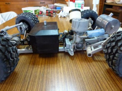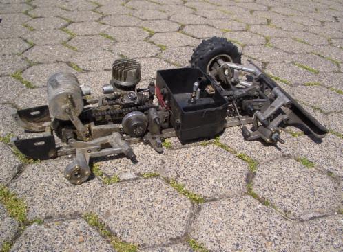 Es handelt sich hierbei um einen GRAUPNER LAND JUMP aus den 80er Jahren mit Allradantrieb über Kette. Dieses Teil habe ich von einem Arbeitskollegen…danke Peter…geschenkt bekommen.