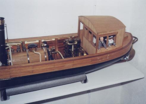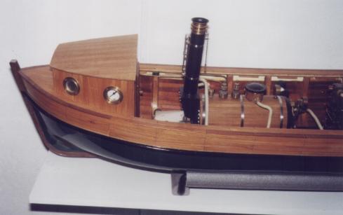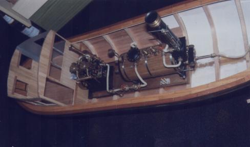 Der Vorteil dieser Kesselkonstruktion: Das Hinterteil mit den Flammrohren, der Umlenkkammer und den Rauchrohren kann zur Reinigung abgeschraubt werden. Und falls mal was undicht wird, habe ich mir somit eine Hintertür zum Nachlöten offen gehalten. Eigentlich sollte es eine stationäre Anlage werden (…Bilder folgen…), aber der Vorsatz hielt nur bis zur nächsten Ausstellung, und so entstand das Schiff um die Maschine herum.