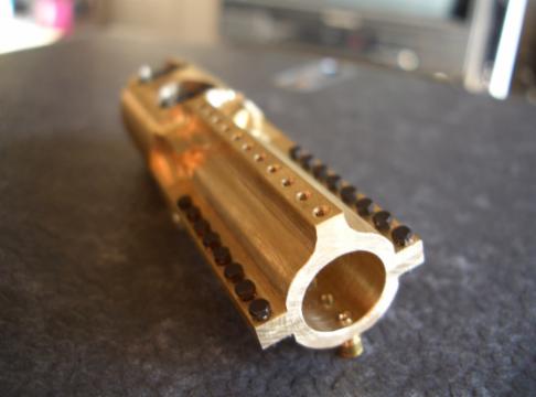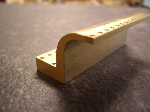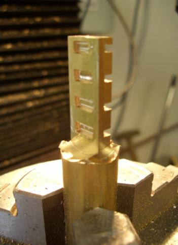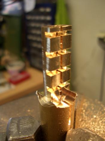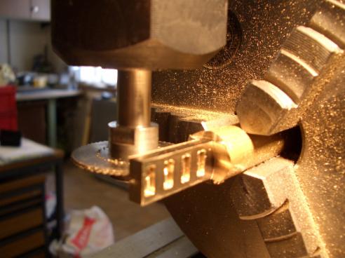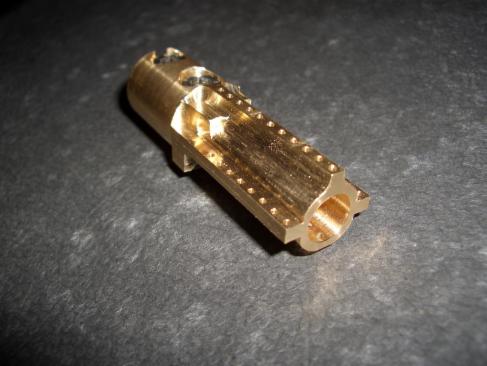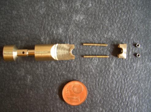 …abweichend von der Bauanleitung wurden viele Teile aus dem Vollen herausgearbeitet, was in diesem Maßstab die Herstellung und das sichere Spannen vereinfacht ohne das Werkstück im Schraubstock zu zerdrücken. Nach vollständiger Bearbeitung wird das fertige Teil nur noch abgestochen oder mit einem Scheibenfräser abgesägt...fertig…