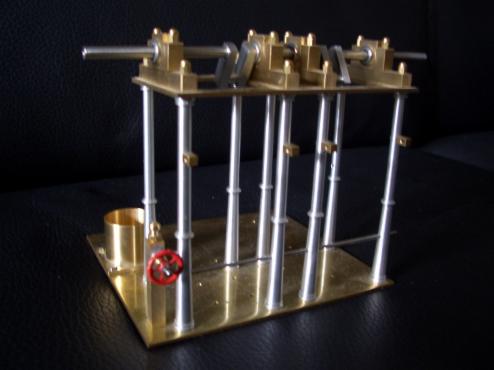 …es war im Jahre 2003…wieder einmal war Ausstellung in Wiesbaden und ich saß an einer kleinen Drehmaschine und fertigte Wein-Römer und kleine Modellbau-Flaschen. Da kam mir der Gedanke: “Warum fertige ich eigentlich Teile die keiner braucht, man könnte doch was sinnvolles machen wie z.B. eine Dampfmaschine oder so…“. Da erinnerte ich mich an das Buch DAMPF 12 mit einer hübschen Schiffsdampfmaschine mit vielen Hebeln, Stangen und anderen filigranen Teilen, die ich immer schon mal bauen wollte…