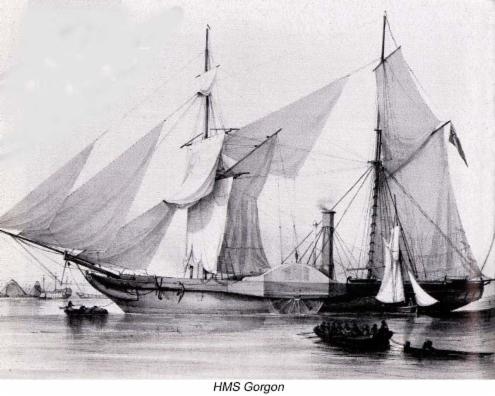 Vorbild für die hier beschriebene Dampfmaschine war die „Gorgan“- Maschine von Seaward & Co. Aus dem Jahre 1837. Die Direktwirkende Maschine mit oben liegender Welle war in dem damals größten Kriegsschiff der englischen Marine, der Fregatte „Gorgan“ eingebaut. Die Konstruktion war vorbildlich für viele Maschinen in den folgenden 10 Jahren. Ein Modell dieser geschichtlich denkwürdigen Maschine steht heute in Victoria-and-Albert-Museum in Kensington-London.